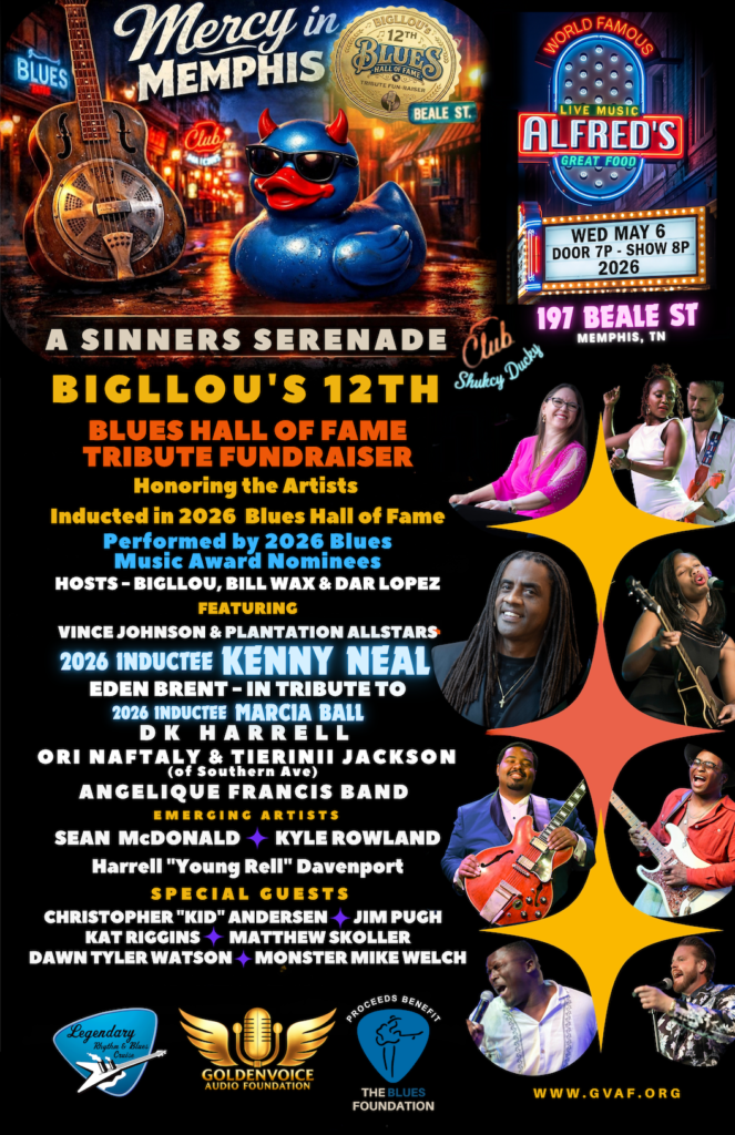 MEMPHIS, TN – GoldenVoice Audio Foundation and Executive Producer BIGLLOU Johnson are proud to announce the return of the most anticipated event of Blues Music Awards week. On May 6th, the 12th Annual Blues Hall of Fame Tribute Fun-Raiser takes place.
