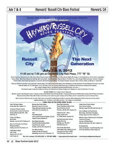 July 7 & 8 Hayward/ Russell City Blues Festival Hayward, CA 20 Blues Festival Guide 2012