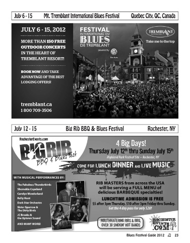 July 6 - 15 Mt. Tremblant International Blues Festival Quebec City, QC, Canada July 12 - 15 Big Rib BBQ & Blues Festival Rochester, NY Blues Festival Guide 2012 23