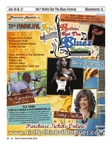 July 20 & 21 Ain’t Nothin But The Blues Festival Bloomington, IL 26 Blues Festival Guide 2012
