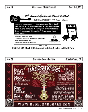 July 14 Grassroots Blues Festival Duck Hill, MS July 21 Blues and Bones Festival Angels Camp, CA Blues Festival Guide 2012 27