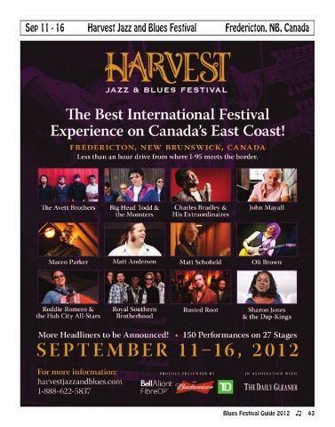Sep 11 - 16 Harvest Jazz and Blues Festival Fredericton, NB, Canada Blues Festival Guide 2012 43