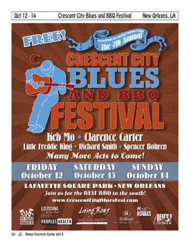 Oct 12 - 14 Crescent City Blues and BBQ Festival New Orleans, LA 50 Blues Festival Guide 2012
