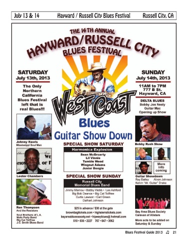 July 13 & 14 Hayward / Russell City Blues Festival Russell City, CA Blues Festival Guide 2013 21