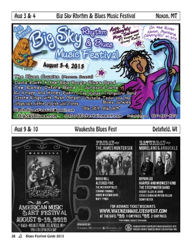 Aug 3 & 4 Big Sky Rhythm & Blues Music Festival Noxon, MT Aug 9 & 10 Waukesha Blues Fest Delafield, WI 28 Blues Festival Guide 2013