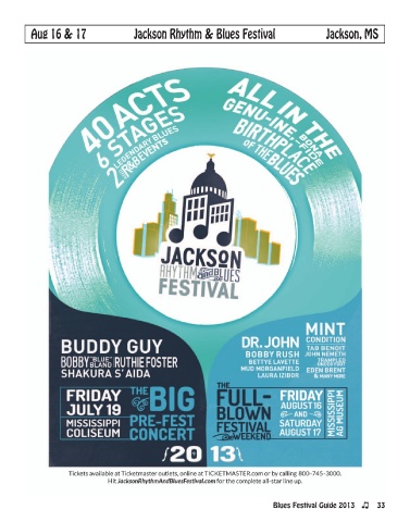 Aug 16 & 17 Jackson Rhythm & Blues Festival Jackson, MS Blues Festival Guide 2013 33