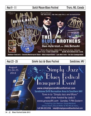 Aug 9 - 11 Dutch Mason Blues Festival Truro, NS, Canada Aug 23 - 25 Simply Jazz & Blues Festival Sandstone, WV 34 Blues Festival Guide 2013
