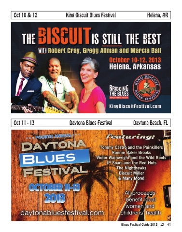Oct 10 & 12 King Biscuit Blues Festival Helena, AR Oct 11 - 13 Daytona Blues Festival Daytona Beach, FL Blues Festival Guide 2013 41