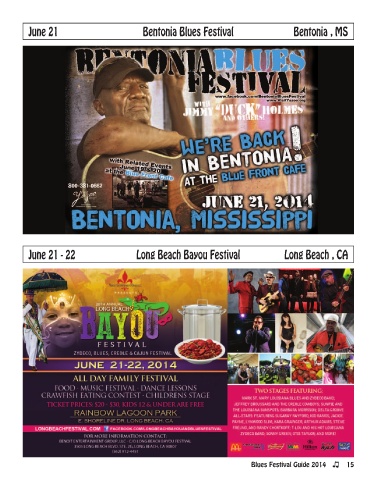 June 21 Bentonia Blues Festival Bentonia , mS June 21 - 22 long Beach Bayou Festival long Beach , ca Blues Festival Guide 2014 15
