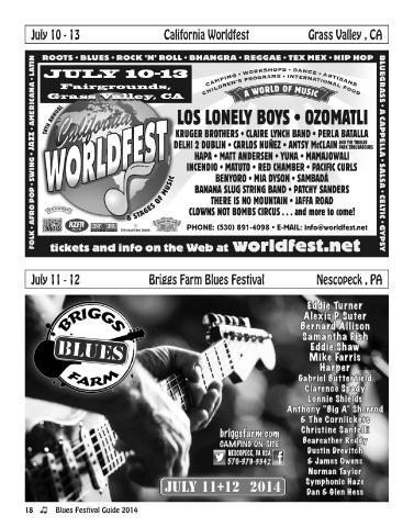 July 10 - 13 california Worldfest Grass valley , ca July 11 - 12 Briggs Farm Blues Festival Nescopeck , Pa 18 Blues Festival Guide 2014
