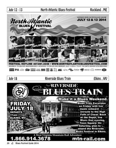 July 12 - 13 North atlantic Blues Festival rockland , me July 18 riverside Blues train elkins , Wv 20 Blues Festival Guide 2014