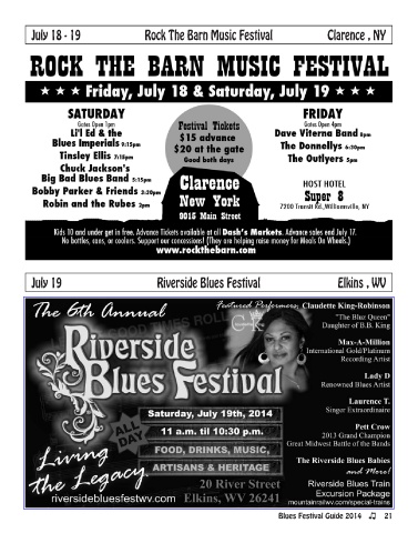 July 18 - 19 rock the Barn music Festival clarence , Ny July 19 riverside Blues Festival elkins , Wv Blues Festival Guide 2014 21