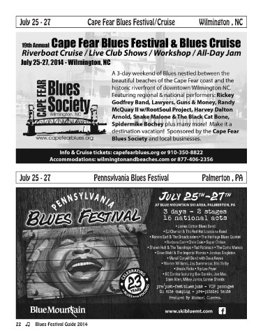 July 25 - 27 cape Fear Blues Festival/cruise Wilmington , Nc July 25 - 27 Pennsylvania Blues Festival Palmerton , Pa 22 Blues Festival Guide 2014
