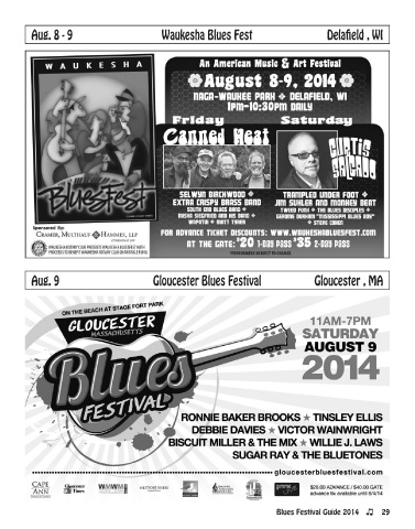 aug. 8 - 9 Waukesha Blues Fest Delafield , Wi aug. 9 Gloucester Blues Festival Gloucester , ma Blues Festival Guide 2014 29