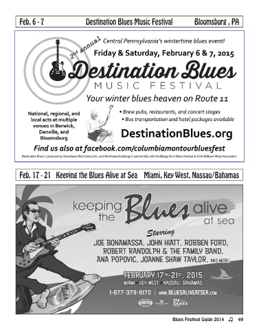 Feb. 6 - 7 Destination Blues music Festival Bloomsburg , Pa Feb. 17 - 21 Keeping the Blues alive at Sea miami, Key West, Nassau/Bahamas Blues Festival Guide 2014 49