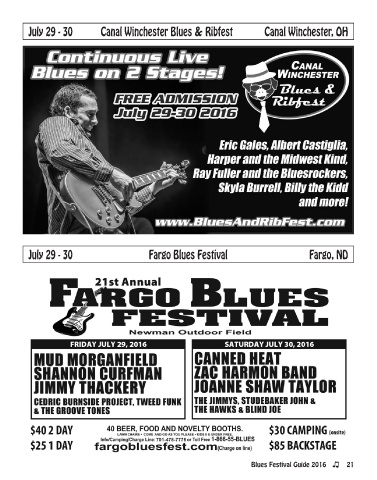 July 29 - 30 canal Winchester Blues & ribfest canal Winchester, oh July 29 - 30 Fargo Blues Festival Fargo, ND Blues Festival Guide 2016 21