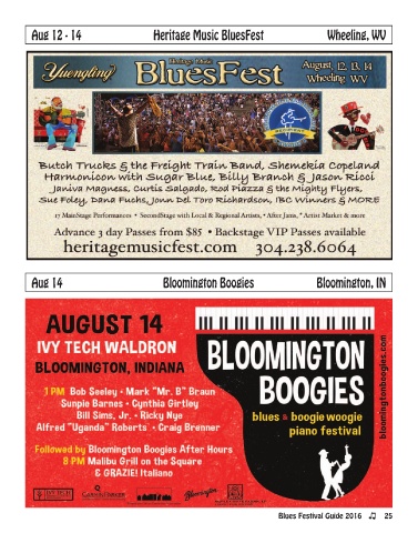 aug 12 - 14 heritage Music BluesFest Wheeling, Wv aug 14 Bloomington Boogies Bloomington, IN Blues Festival Guide 2016 25