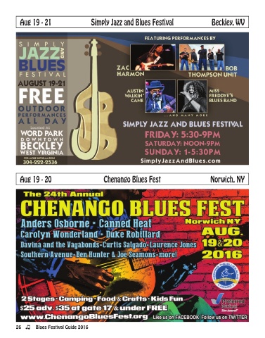 aug 19 - 21 Simply Jazz and Blues Festival Beckley, Wv aug 19 - 20 chenango Blues Fest Norwich, Ny 26 Blues Festival Guide 2016