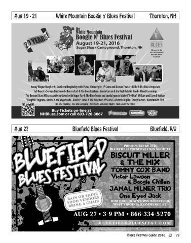 aug 19 - 21 White Mountain Boogie n' Blues Festival thornton, Nh aug 27 Bluefield Blues Festival Bluefield, Wv Blues Festival Guide 2016 29