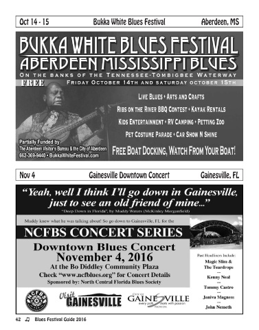 oct 14 - 15 Bukka White Blues Festival aberdeen, MS Nov 4 Gainesville Downtown concert Gainesville, Fl 42 Blues Festival Guide 2016