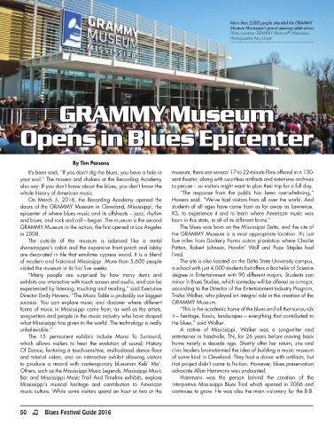 GRAMMY Museum in the nation, the first opened in Los Angeles The blues was born on the Mississippi Delta, and the site of
