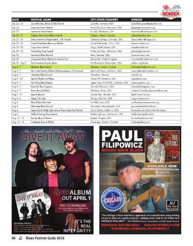 July 25 - 31 Calgary International Blues Festival Calgary, Alberta, Canada calgarybluesfest.com