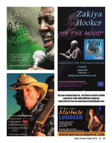 get your weekly blues fix - the Blues Festival e-guide newsletter with editor michele Lundeen! Subscribe for free on www.BluesFestivalguide.com Blues Festival Guide 2016 95