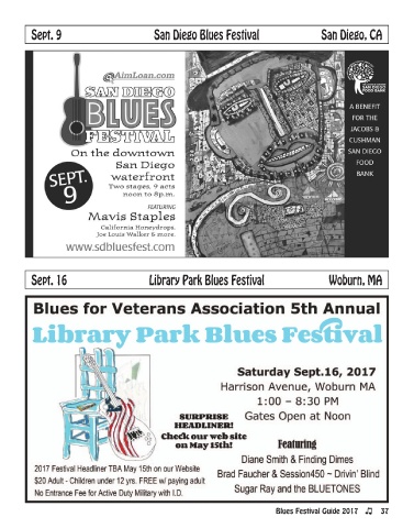 Sept. 9 San Diego Blues Festival San Diego, CA Sept. 16 Library Park Blues Festival Woburn, MA Blues Festival Guide 2017 37