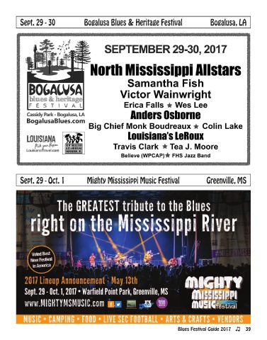 Sept. 29 - 30 Bogalusa Blues & Heritage Festival Bogalusa, LA Sept. 29 - Oct. 1 Mighty Mississippi Music Festival Greenville, MS Blues Festival Guide 2017 39