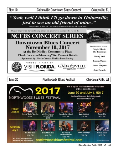 Nov 10 Gainesville Downtown Blues Concert Gainesville, FL June 30 Northwoods Blues Festival Chippewa Falls, WI Blues Festival Guide 2017 45