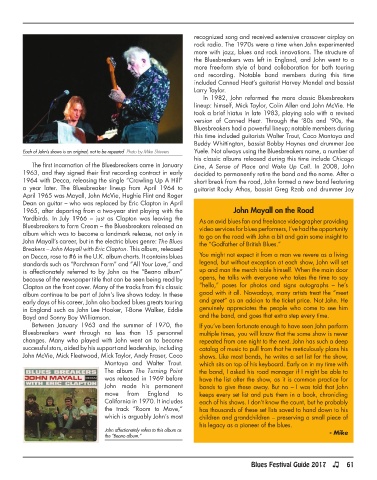 Each of John’s shows is an original, not to be repeated Photo by Mike Shivvers Yuele. Not always using the Bluesbreakers name, a number of