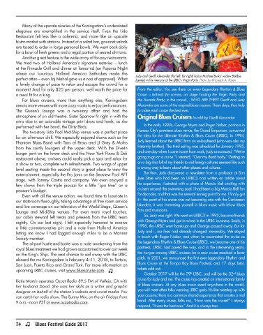 atmosphere of an old theatre. Sister Sparrow fit right in with the Original Blues Cruisers As told by Geoff Alexander