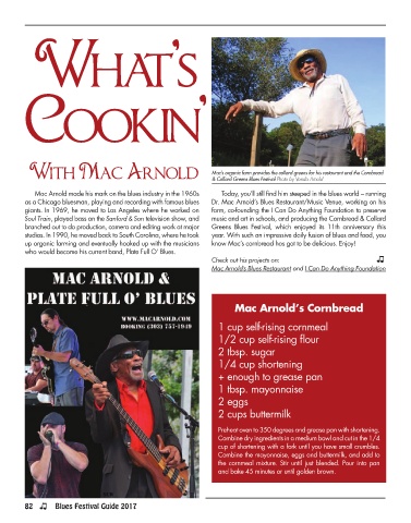 With Mac Arnold Mac’s organic farm provides the collard greens for his restaurant and the Cornbread