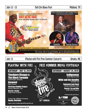 July 12 - 13 Tall City Blues Fest Midland, TX July 13 Playing with Fire Free Summer Concerts Omaha, NE 16 Blues Festival Guide 2019