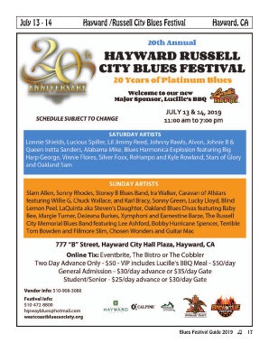 July 13 - 14 Hayward /Russell City Blues Festival Hayward, CA Blues Festival Guide 2019 17