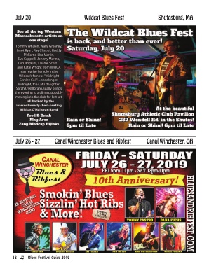 July 20 Wildcat Blues Fest Shutesburg, MA July 26 - 27 Canal Winchester Blues and Ribfest Canal Winchester, OH 18 Blues Festival Guide 2019
