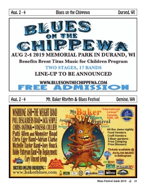 Aug. 2 - 4 Blues on the Chippewa Durand, WI Aug. 2 - 4 Mt. Baker Rhythm & Blues Festival Deming, WA Blues Festival Guide 2019 21
