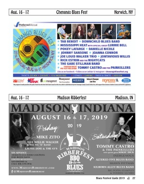 Aug. 16 - 17 Chenango Blues Fest Norwich, NY Aug. 16 - 17 Madison Ribberfest Madison, IN Blues Festival Guide 2019 27