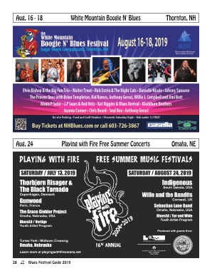 Aug. 16 - 18 White Mountain Boogie N' Blues Thornton, NH Aug. 24 Playing with Fire Free Summer Concerts Omaha, NE 28 Blues Festival Guide 2019