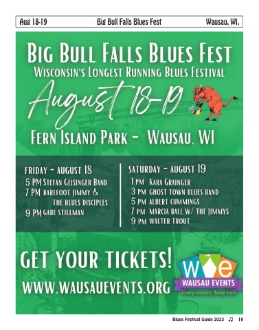 Aug 18-19 Big Bull Falls Blues Fest Wausau, WI, Blues Festival Guide 2023 19