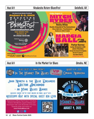 Aug 8-9 Waukesha Rotary BluesFest Delafield, WI Aug 8-9 In the Market for Blues Omaha, NE 18 Blues Festival Guide 2025