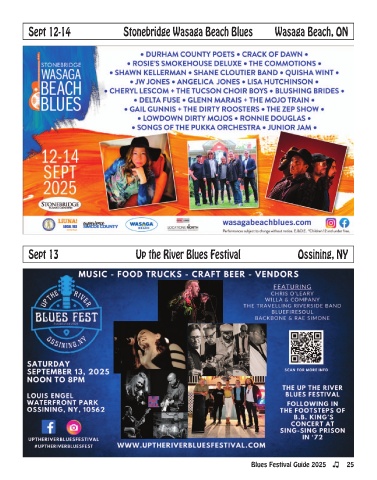 Sept 12-14 Stonebridge Wasaga Beach Blues Wasaga Beach, ON Sept 13 Up the River Blues Festival Ossining, NY Blues Festival Guide 2025 25