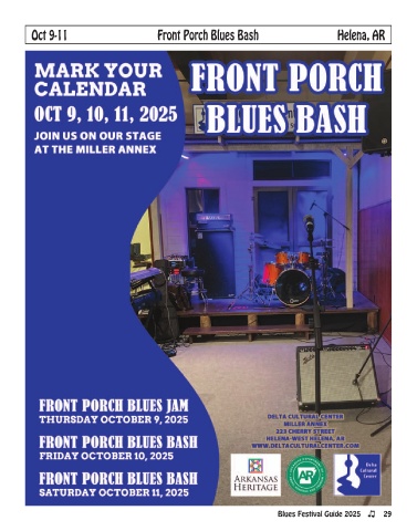 Oct 9-11 Front Porch Blues Bash Helena, AR x x x Blues Festival Guide 2025 29