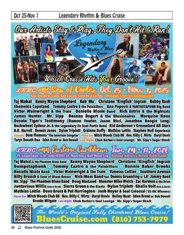 Oct 25-Nov 1 Legendary Rhythm & Blues Cruise x x x 30 Blues Festival Guide 2025