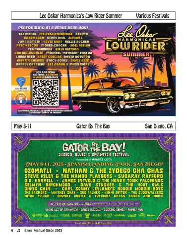 Lee Oskar Harmonica's Low Rider Summer Various Festivals May 8-11 Gator By The Bay San Diego, CA 6 Blues Festival Guide 2025