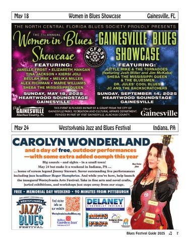 May 18 Women in Blues Showcase Gainesville, FL May 24 Westsylvania Jazz and Blues Festival Indiana, PA Blues Festival Guide 2025 7