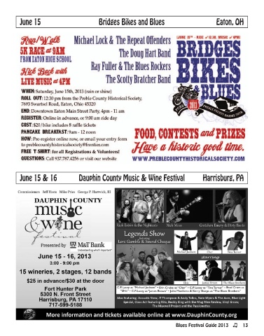 June 15 Bridges Bikes and Blues Eaton, OH June 15 & 16 Dauphin County Music & Wine Festival Harrisburg, PA Blues Festival Guide 2013 13