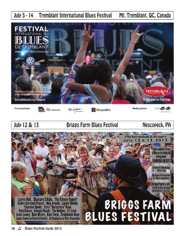 July 5 - 14 Tremblant International Blues Festival Mt. Tremblant, QC, Canada July 12 & 13 Briggs Farm Blues Festival Nescopeck, PA 18 Blues Festival Guide 2013