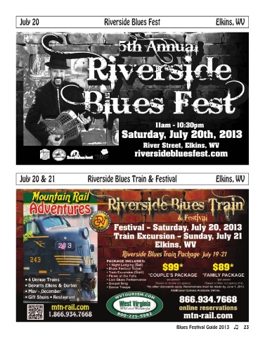 July 20 Riverside Blues Fest Elkins, WV July 20 & 21 Riverside Blues Train & Festival Elkins, WV Blues Festival Guide 2013 23