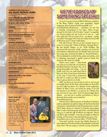 Michele Lundeen: Michele@BluesFestivalGuide.com enough for the blues to fi nd the best “recipes” to appease